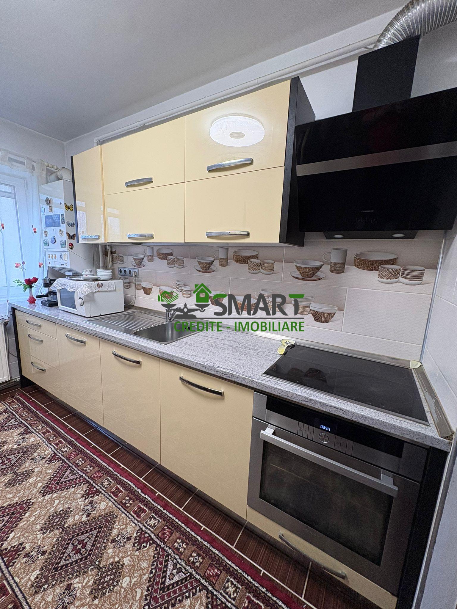 Apartament cu 3 camere semidecomandat, situat la etajul 4. Locuința are o suprafață de 60 mp, este finisată, mobilată și utilată, fiind pregătită pentru mutare imediată.