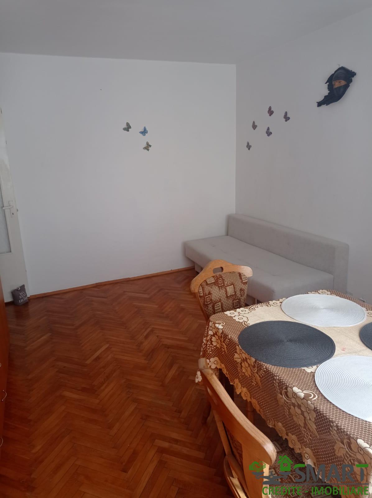 Apartament 2 camere , situat la parterul unui bloc cu 4 etaje, mobilat, utilat, balcon.