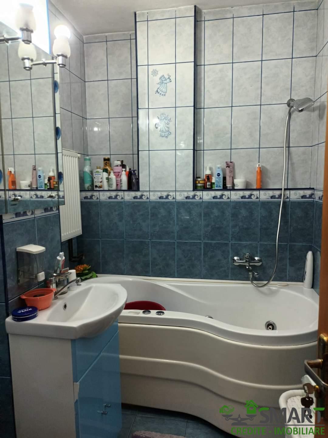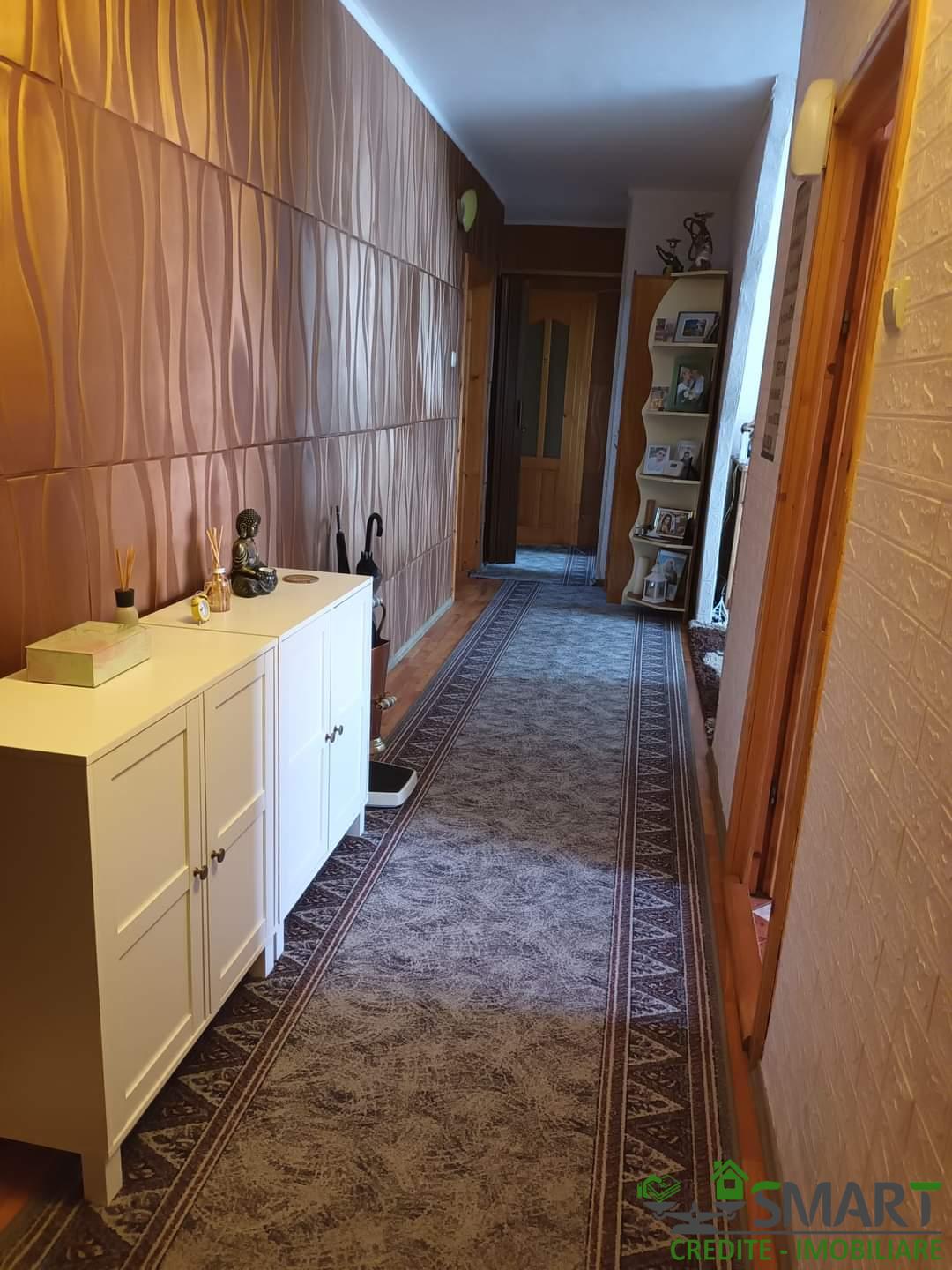 Apartament 4 camere, etaj 1 cu dublă orientare , 4 camere , 2 băi ( gresie și faianță) , cămară de alimente, 81 mp, termopane la toate geamurile , centrala nouă cu instalație în cupru, instalație electrică parțial refăcută, în camere și hol parchet stratificat. Uși interioare din lemn , ușă metalică la intrare.